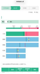 点数を入力すると星印で立ち位置がわかります(写真は算数がまだ打ち込まれていない息子の管理ページです)。